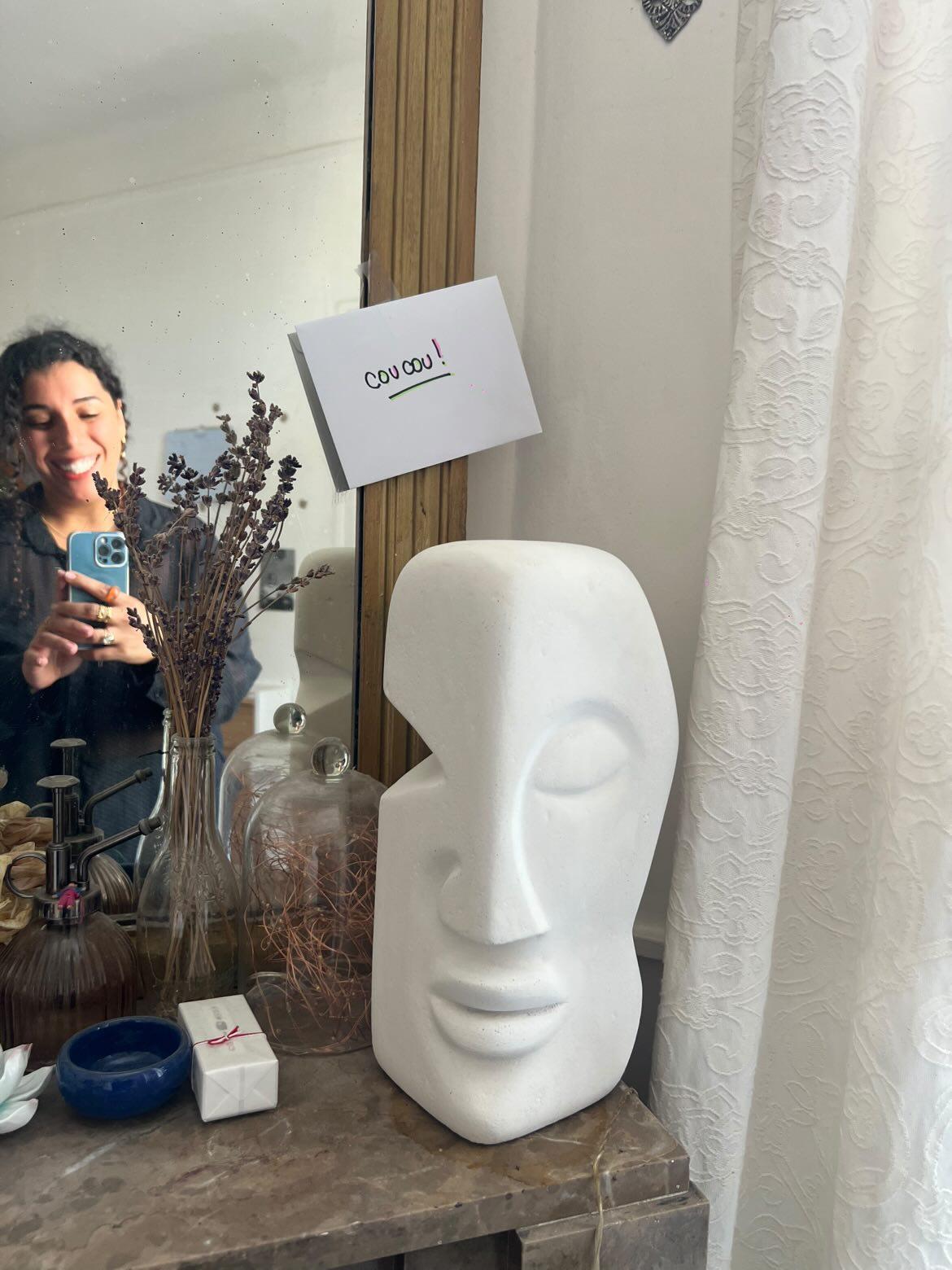 En nous promenant lundi, nous sommes tombés sur vos magnifiques sculptures, et Alejandro est immédiatement tombé amoureux des deux visages. Il les a achetés pour son appartement.